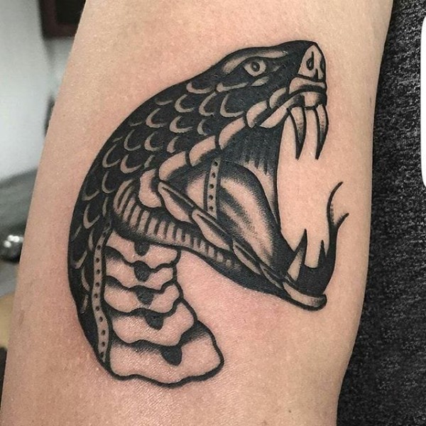 黑色和白色手臂眼镜蛇纹身动物几何点刺纹身图案