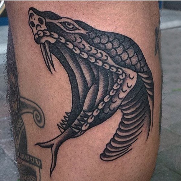黑色和白色手臂眼镜蛇纹身动物几何点刺纹身图案