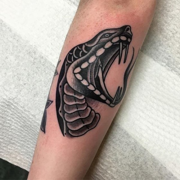 黑色和白色手臂眼镜蛇纹身动物几何点刺纹身图案