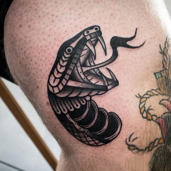 黑色和白色手臂眼镜蛇纹身动物几何点刺纹身图案