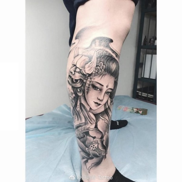艺伎纹身--一组独特创意的日式艺妓纹身图案作品