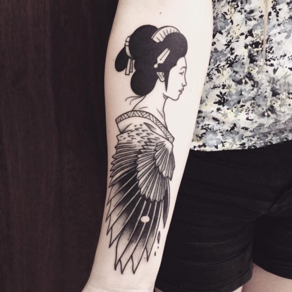 艺伎纹身--一组独特创意的日式艺妓纹身图案作品