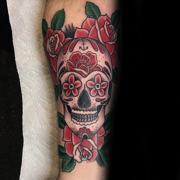欧美玫瑰纹身 男生手臂上花朵纹身图片