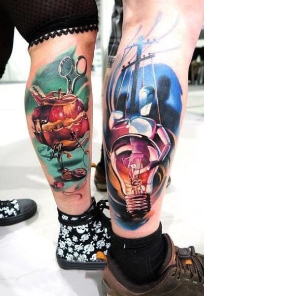 帅气的彩色花腿纹身水墨画纹身图案