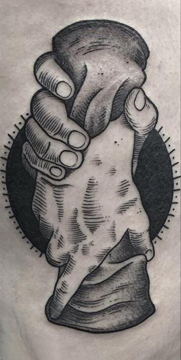 纹身大腿男 男生大腿上紧握的手部纹身图片