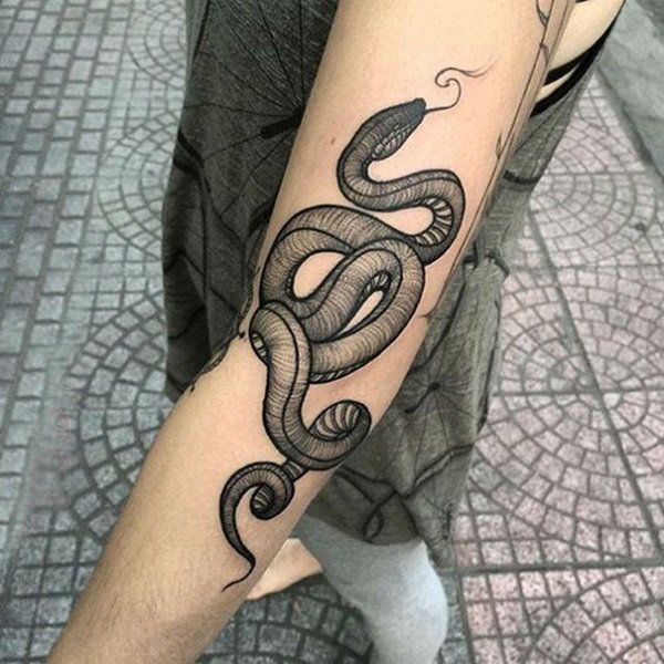 纹身蛇魔 多款简单线条纹身黑色蛇纹身图案