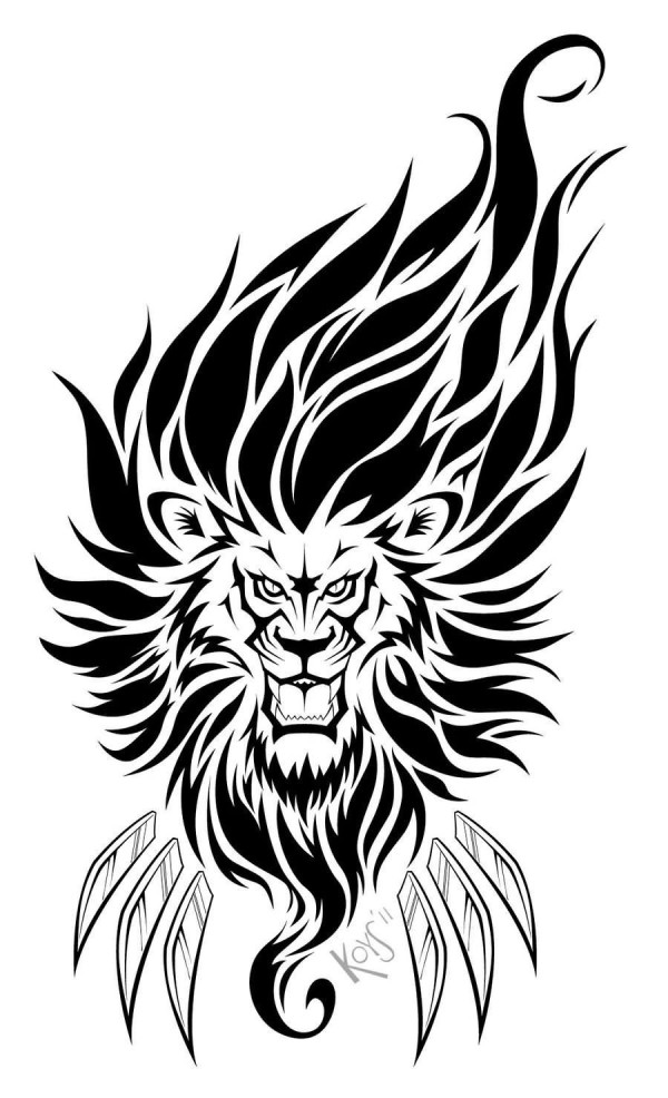 纹身狮子头手稿 简单线条纹身素描黑色纹身狮子头手稿