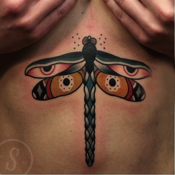 胸部道人加燕子图案半胛纹身