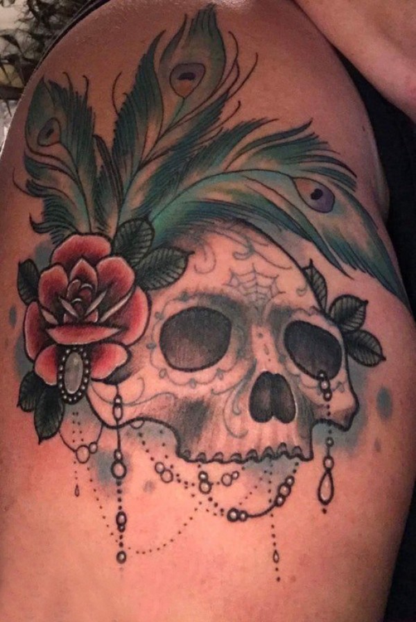 纹身骷髅头 女生大腿上骷髅纹身图片