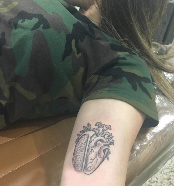 大臂纹身图 女生大臂上黑色的心脏纹身图片