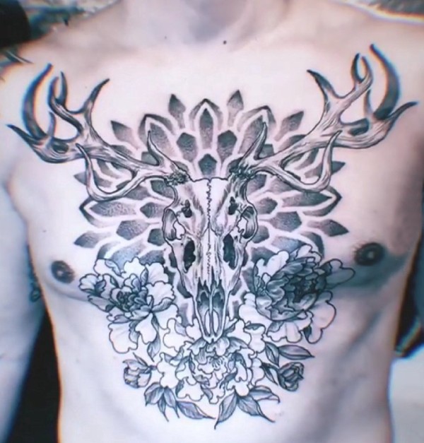 山羊头纹身撒旦 男生胸部羊头纹身图片