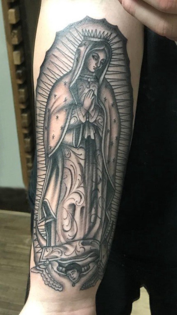 手臂纹身图片 男生手臂上黑色的菩萨纹身图片
