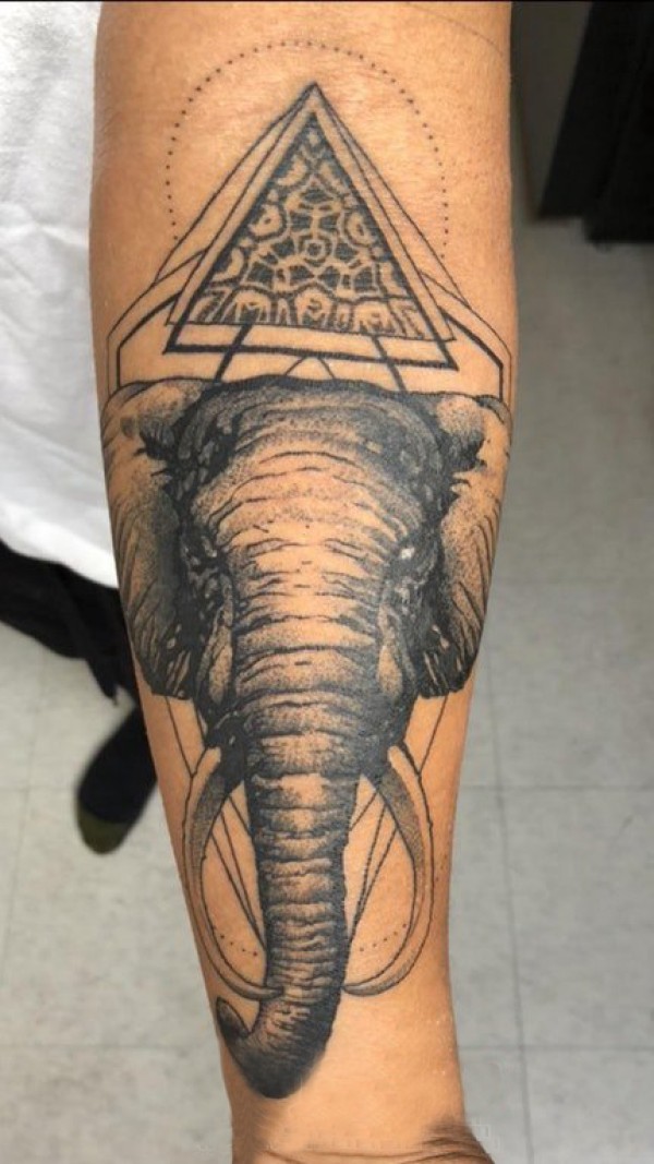 手臂纹身素材 男生手臂上三角形和大象纹身图片