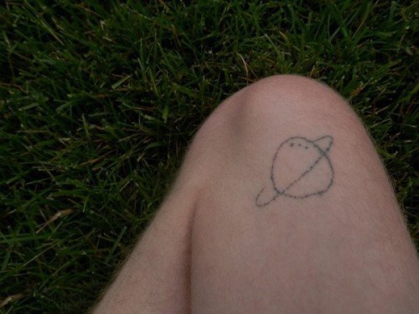 几何元素纹身 男生腿部黑色的星球纹身图片