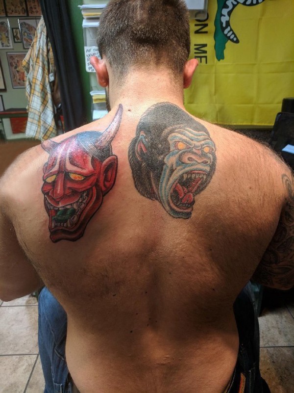 后背纹身男 男生后背上猩猩和般若纹身图片