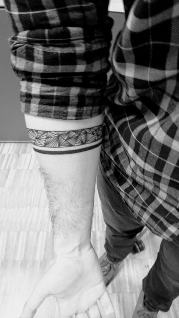 简单线条纹身 男生手臂上黑色的臂环纹身图片