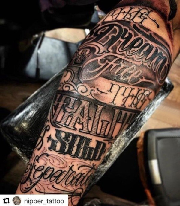 花体英文纹身 男生手臂上花体英文纹身图片