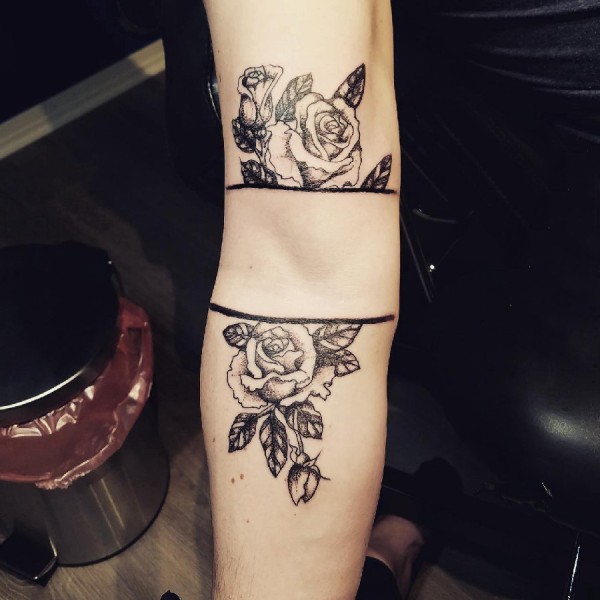 女性手臂上漂亮的玫瑰花纹身图案