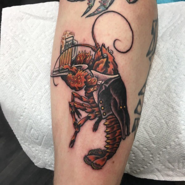 皮皮虾纹身 男生小腿上彩色的虾纹身图片