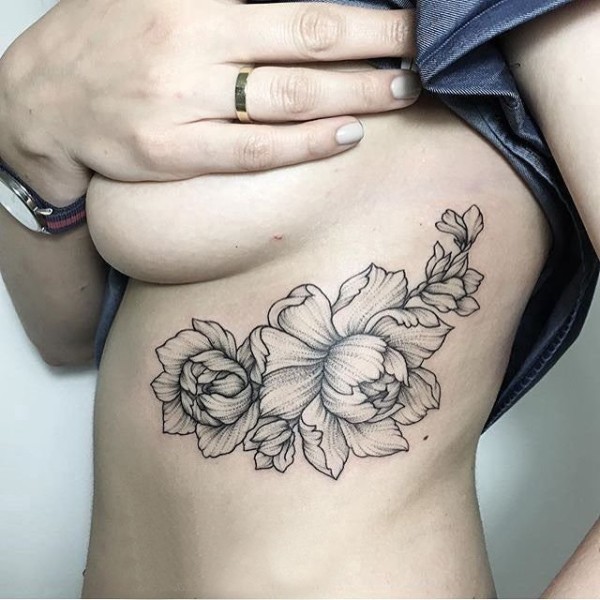 文艺花朵纹身 女生侧肋上文艺花朵纹身图片