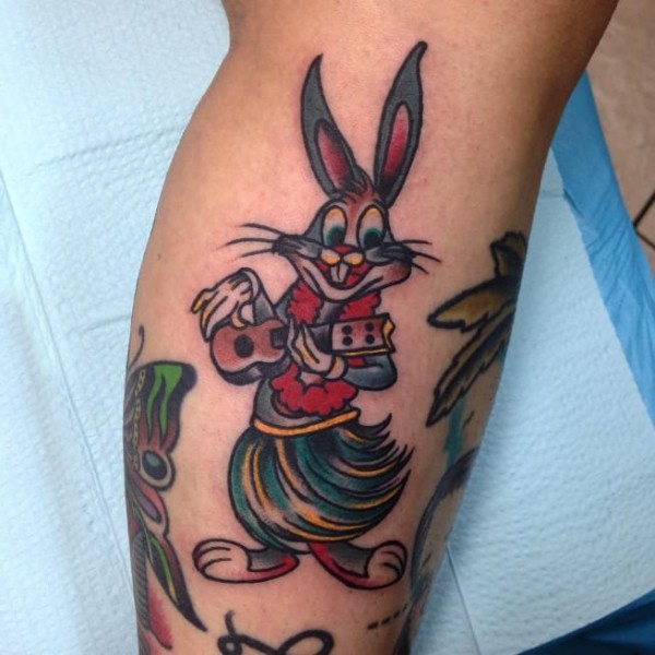 帅气的彩色花腿纹身水墨画纹身图案