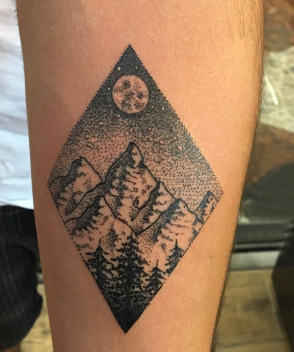 手臂纹身图片 男生手臂上菱形和山脉纹身图片