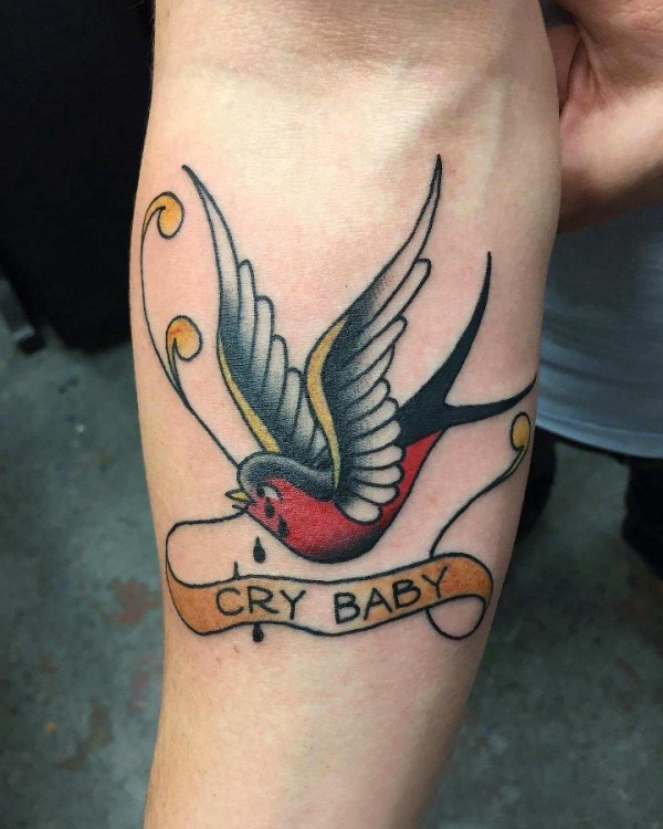 手臂纹身素材 男生手臂上英文和小鸟纹身图片