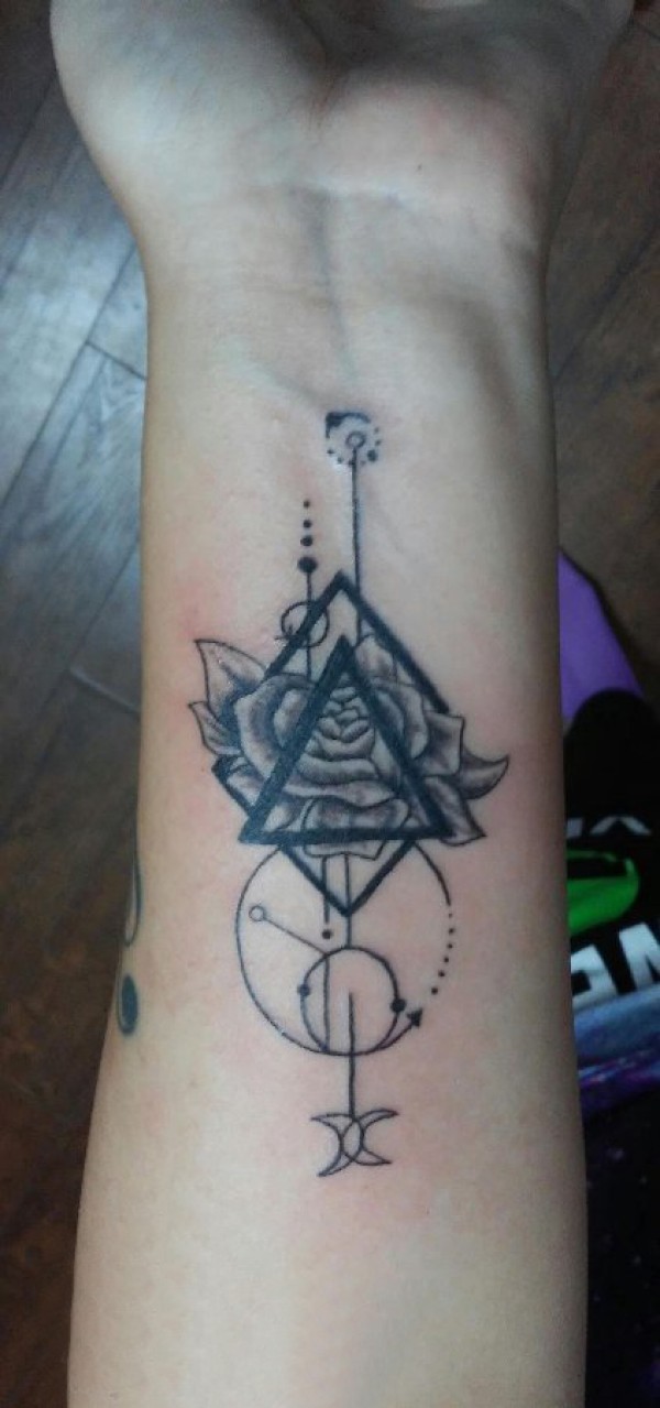 手臂纹身素材 男生手臂上三角形和玫瑰纹身图片