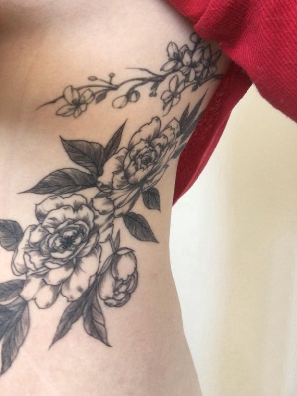 文艺花朵纹身 女生侧腰上文艺花朵纹身图片