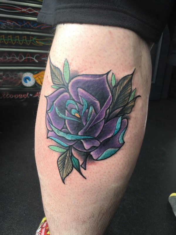 纹身 小玫瑰 男生小腿上欧美玫瑰纹身图片