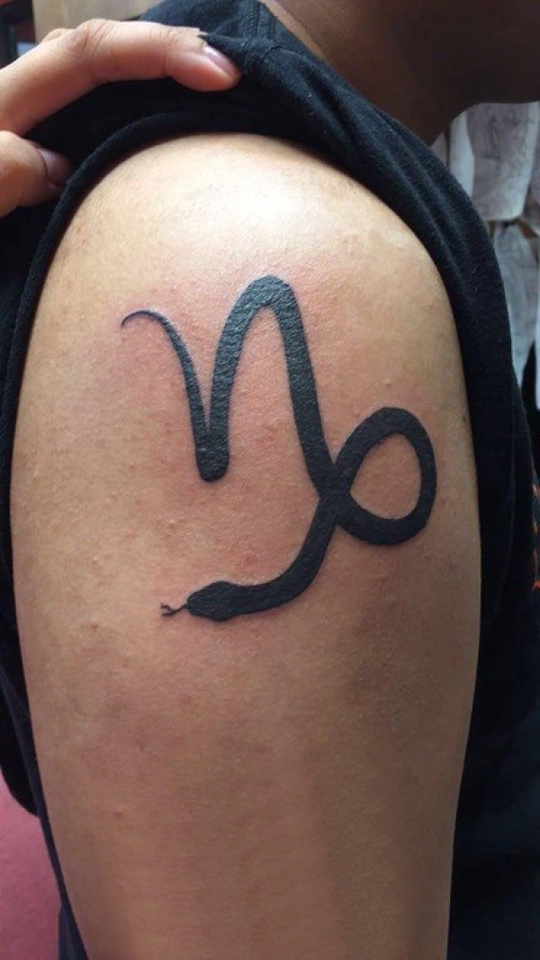 大臂纹身图 男生大臂上黑色的蛇纹身图片