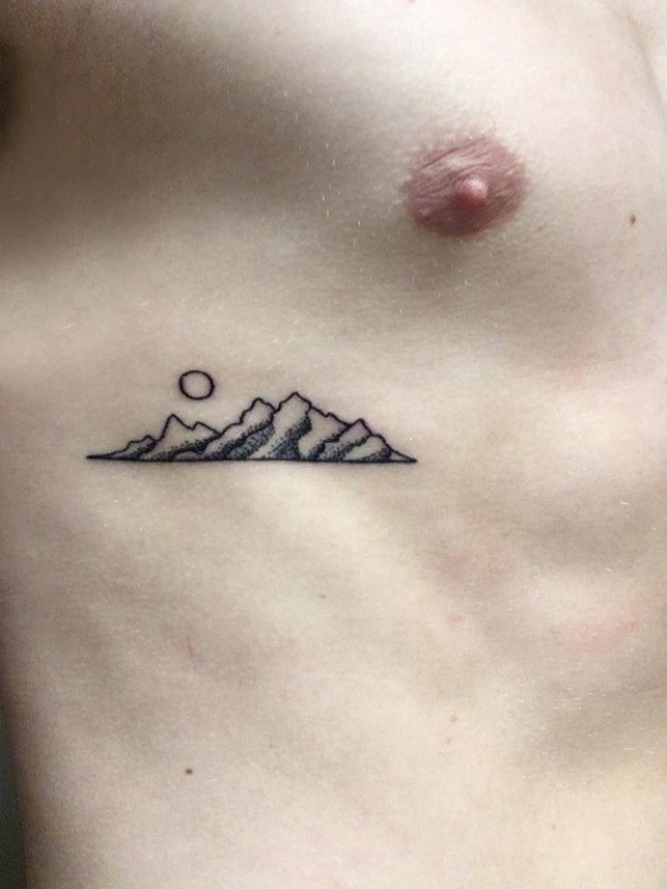 纹身胸部男 男生胸部太阳和山脉纹身图片