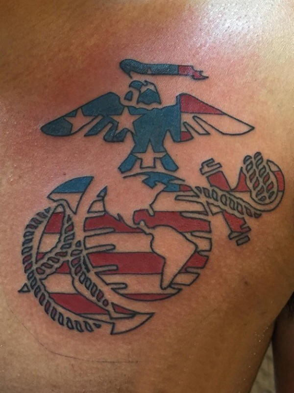 纹身胸部男 男生胸部旗帜和老鹰纹身图片