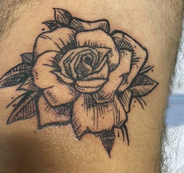 纹身点刺技巧 男生小腿上黑色的玫瑰纹身图片