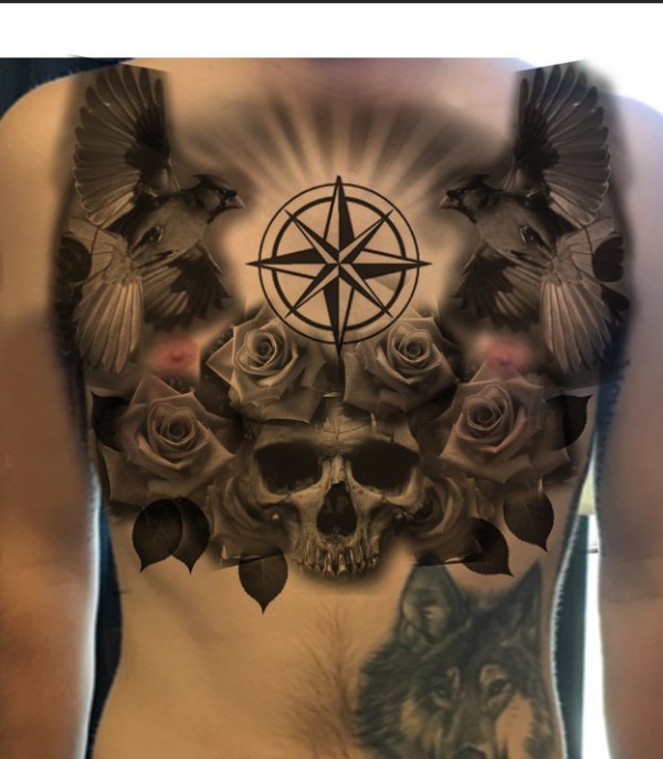 纹身胸部男 男生胸部标志和骷髅纹身图片