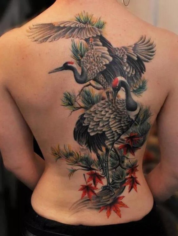 新传统风格的9张男性黑灰大满背纹身图案图片