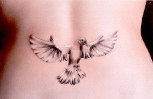 女生后腰纹身 女生后腰上黑色的鸽子纹身图片