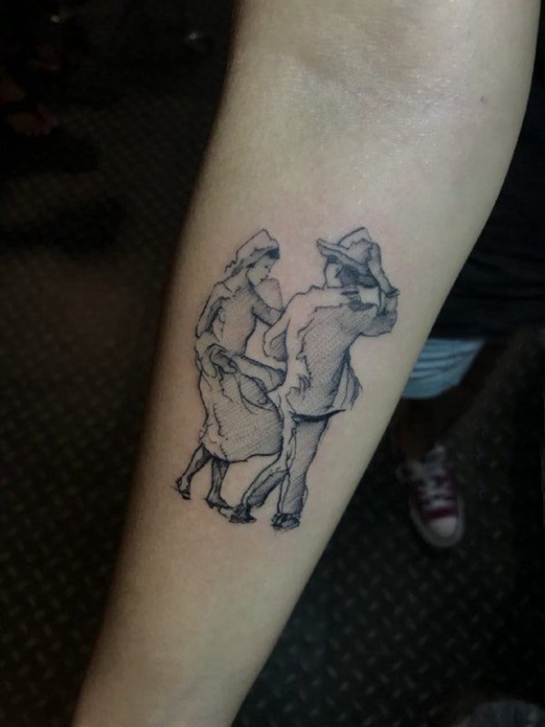 简易纹身素描 男生手臂上黑色的人物纹身图片