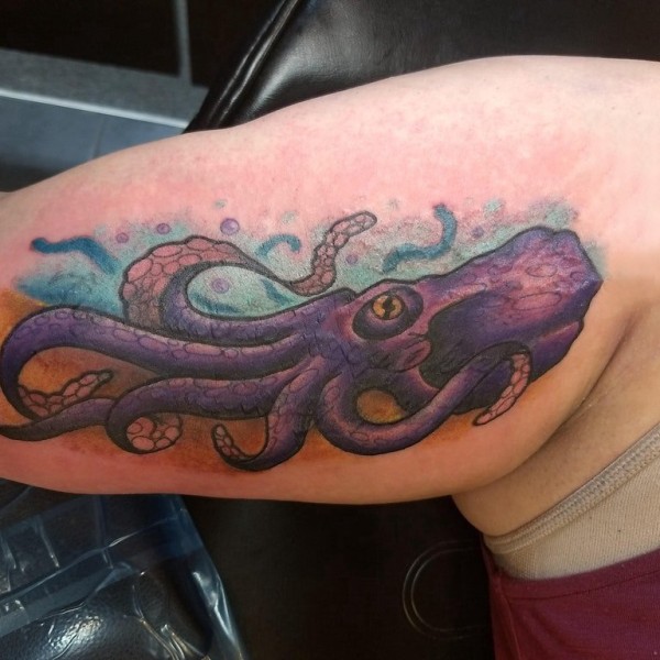 欧美小腿纹身 男生小腿上彩色的章鱼纹身图片