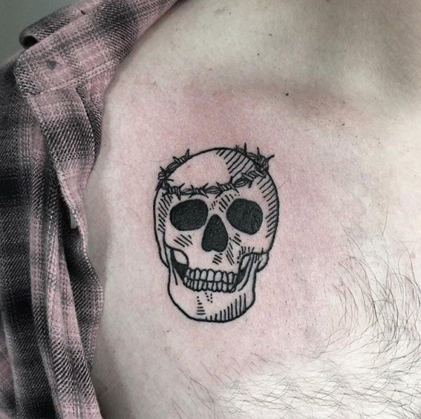 纹身胸部男 男生胸部创意的髅纹身图片