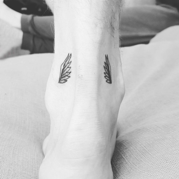 天使翅膀纹身素材 男生脚踝上天使翅膀纹身图案