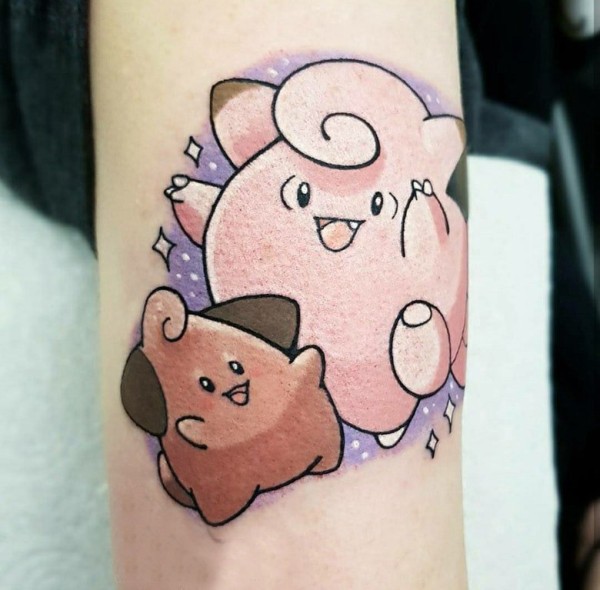 手臂纹身图片 女生手臂上彩色的卡通纹身图片