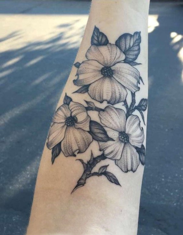 手臂纹身图片 女生手臂上黑色的花朵纹身图片