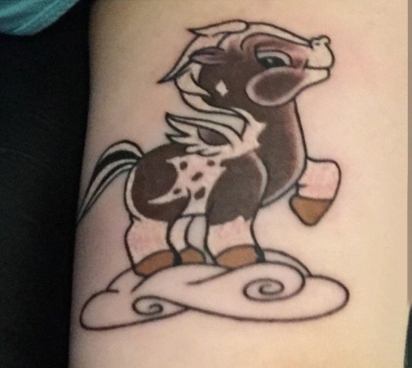 小动物纹身 女生手臂上云朵和马纹身图片
