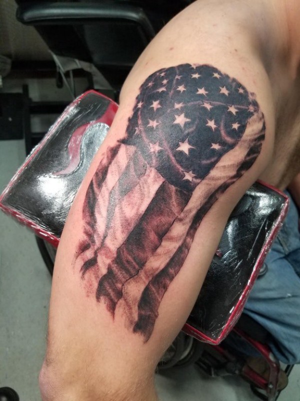 双大臂纹身 男生大臂上黑色的国旗纹身图片