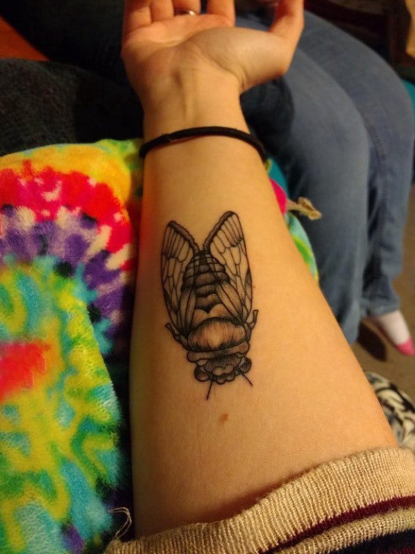 小动物纹身 女生手臂上黑色的昆虫纹身图片