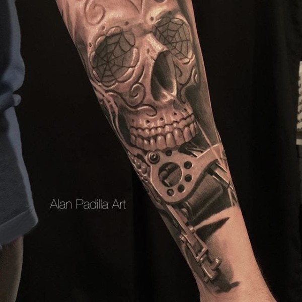 欧美花臂纹身_22张霸气黑灰欧美大黑花臂纹身图案作品图片