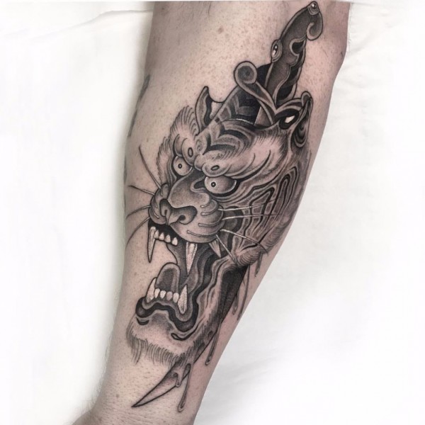 老虎图腾纹身 多款黑灰纹身点刺技巧老虎纹身图案