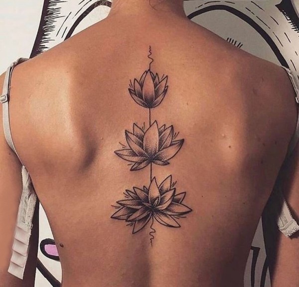 后背纹身男 男生后背上黑色的莲花纹身图片