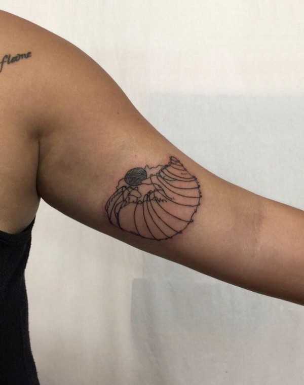 贝壳图案纹身 女生手臂上黑色纹身图片